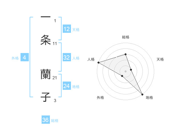 一条 蘭子さんを姓名の画数から五運を鑑定