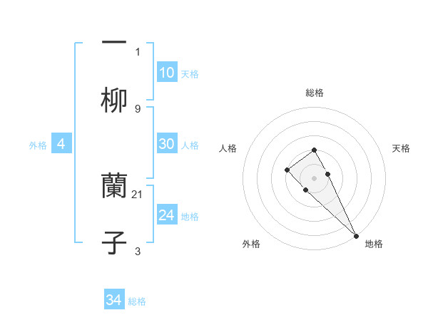 一柳 蘭子さんを姓名の画数から五運を鑑定