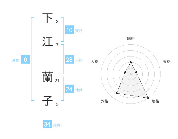 下江 蘭子さんを姓名の画数から五運を鑑定