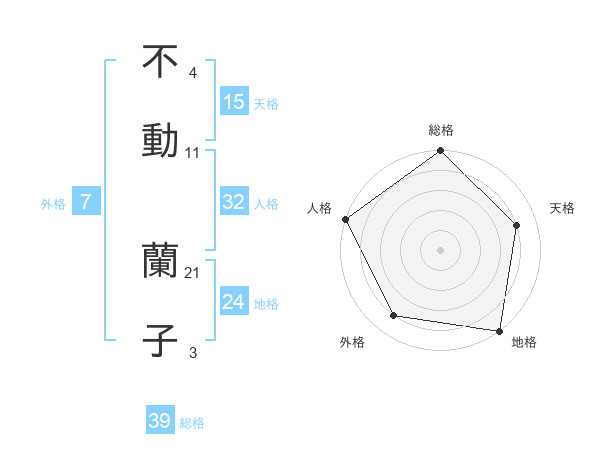 不動 蘭子さんの総格は39画の5点!