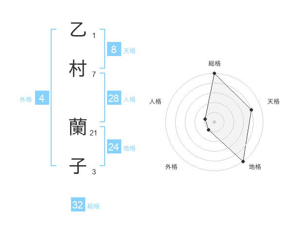 乙村 蘭子さんの天格は8画の4点!