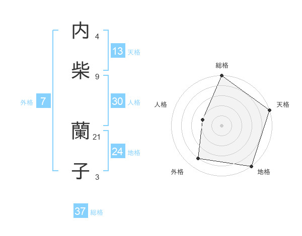 内柴 蘭子さんの総格は37画の5点!