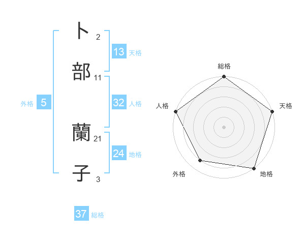 卜部 蘭子さんの総格は37画の5点!
