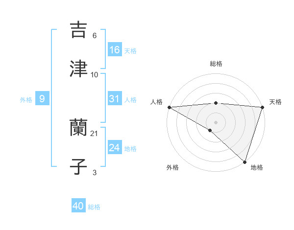 吉津 蘭子さんの天格は16画の5点!