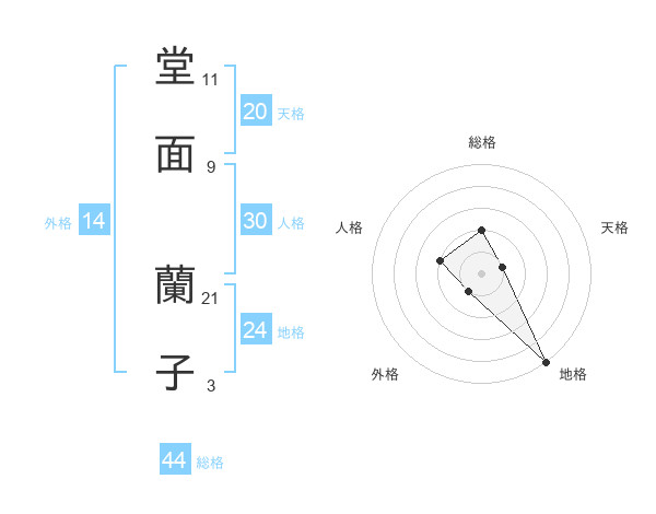 堂面 蘭子さんの総格は44画の2点!