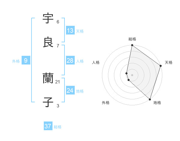 宇良 蘭子さんの総格は37画の5点!