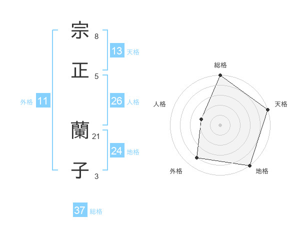 宗正 蘭子さんの総格は37画の5点!