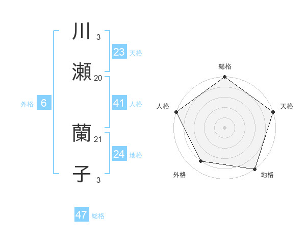 川瀬 蘭子さんを姓名の画数から五運を鑑定