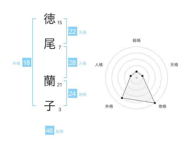 徳尾 蘭子さんを姓名の画数から五運を鑑定