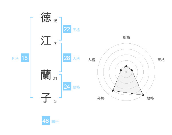 徳江 蘭子さんの天格は22画の1点!