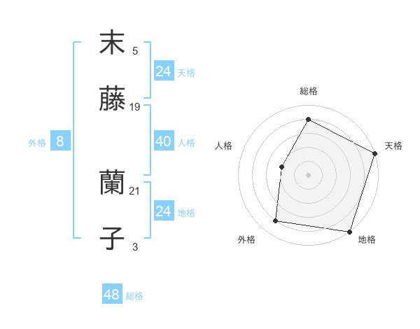 末藤 蘭子さんの天格は24画の5点!
