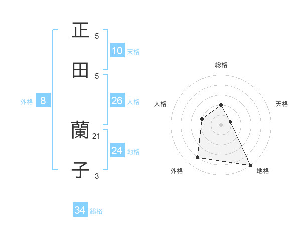 正田 蘭子さんの天格は10画の1点!