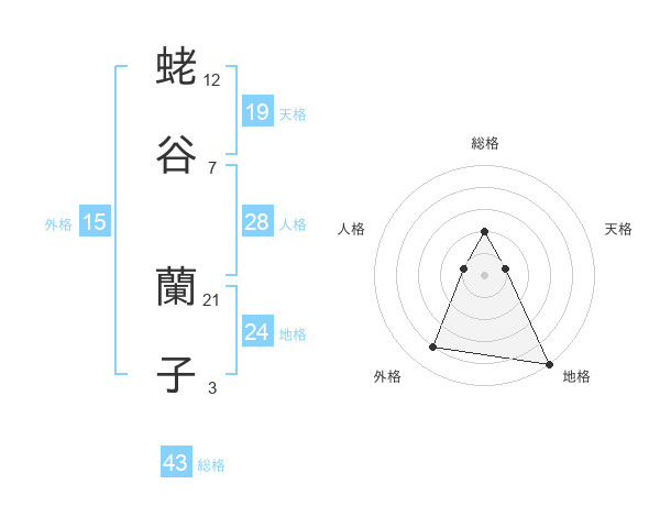 蛯谷 蘭子さんの総格は43画の2点!