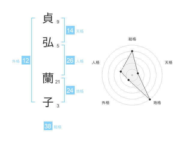 貞弘 蘭子さんの総格は38画の4点!