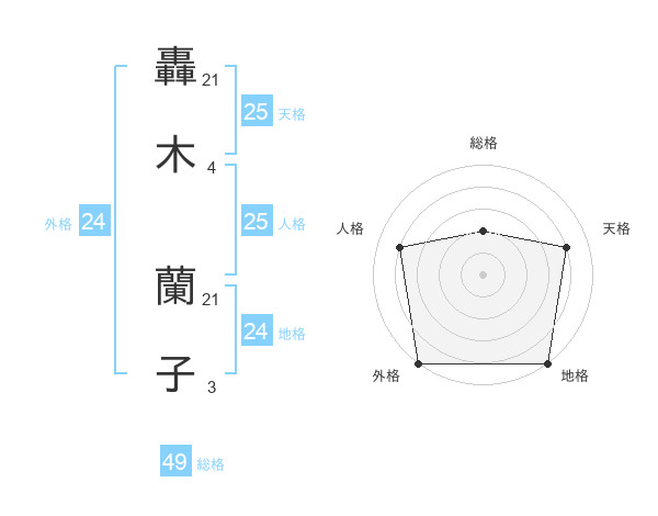轟木 蘭子さんを姓名の画数から五運を鑑定