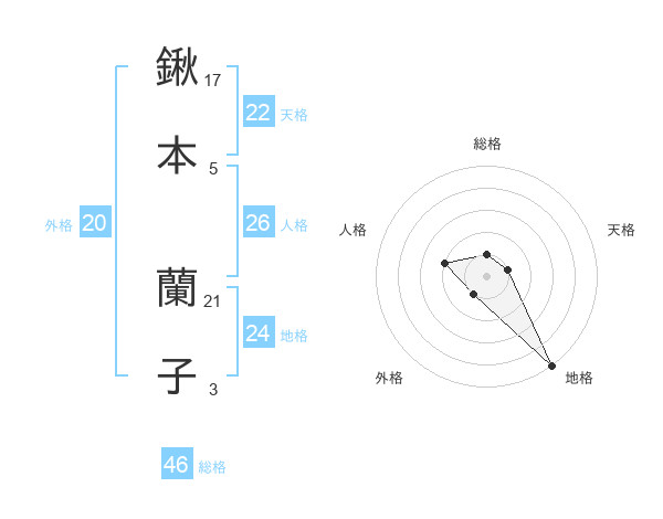 鍬本 蘭子さんを姓名の画数から五運を鑑定