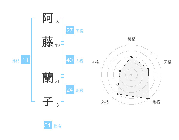 阿藤 蘭子さんの総格は51画の3点!