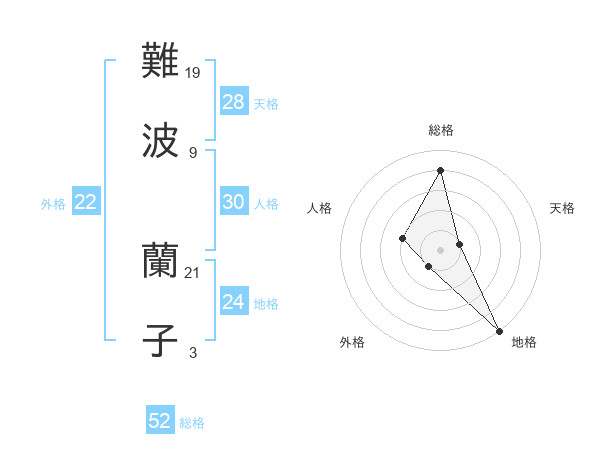 難波 蘭子さんを姓名の画数から五運を鑑定