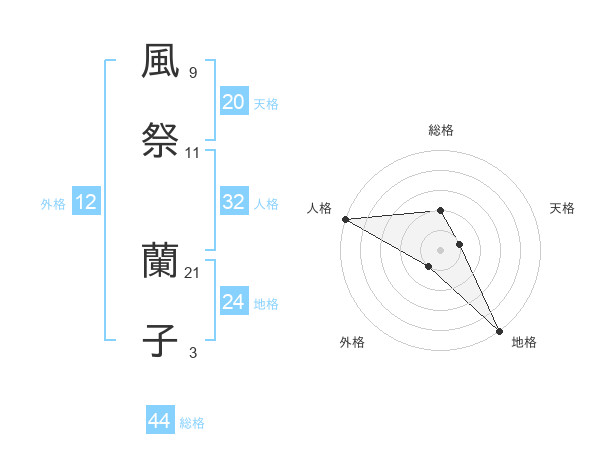 風祭 蘭子さんの外格は12画の1点!