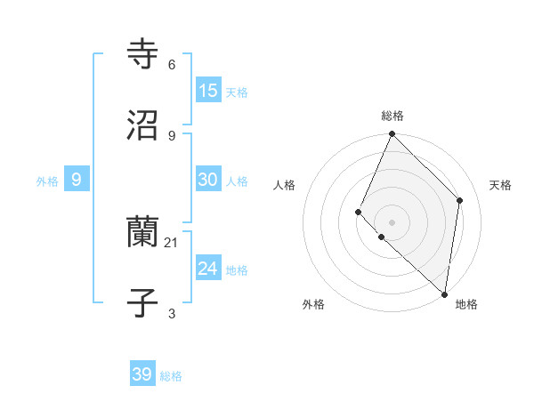 寺沼 蘭子さんの天格は15画の4点!