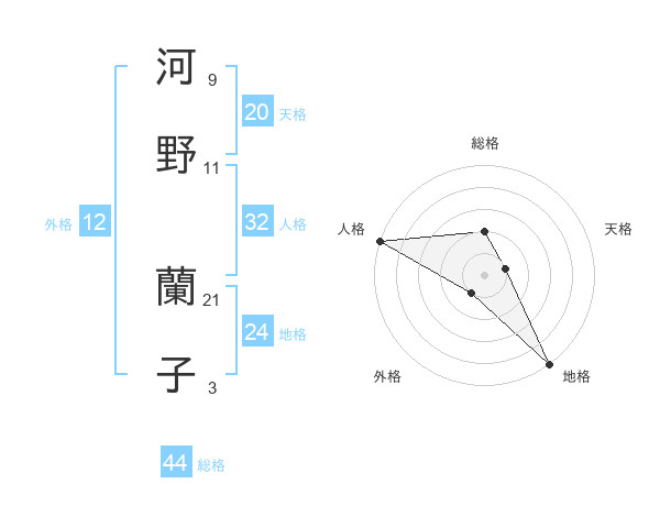 河野 蘭子さんの総格は44画の2点