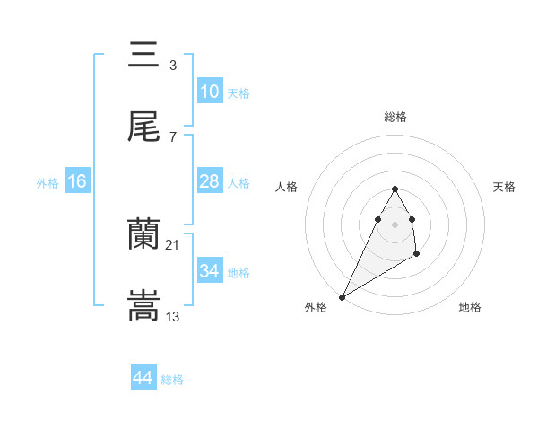 三尾 蘭嵩さんを姓名の画数から五運を鑑定