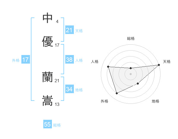 中優 蘭嵩さんを姓名の画数から五運を鑑定