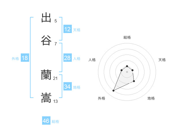 出谷 蘭嵩さんの総格は46画の1点!