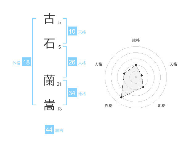 古石 蘭嵩さんを姓名の画数から五運を鑑定