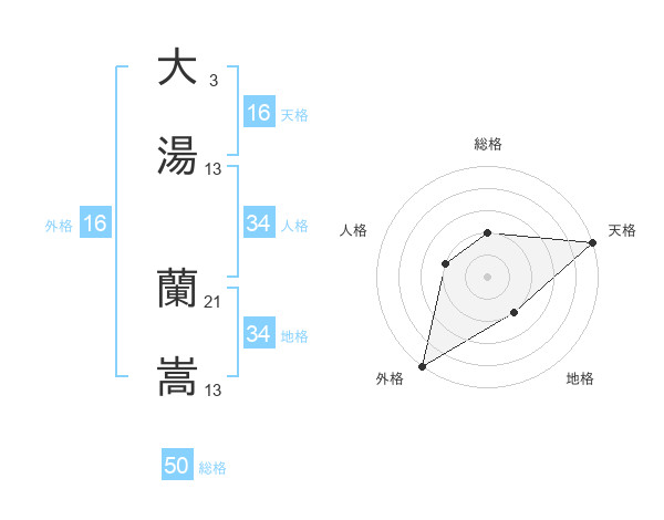 大湯 蘭嵩さんの総格は50画の2点!