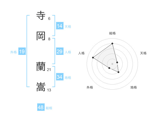 寺岡 蘭嵩さんを姓名の画数から五運を鑑定