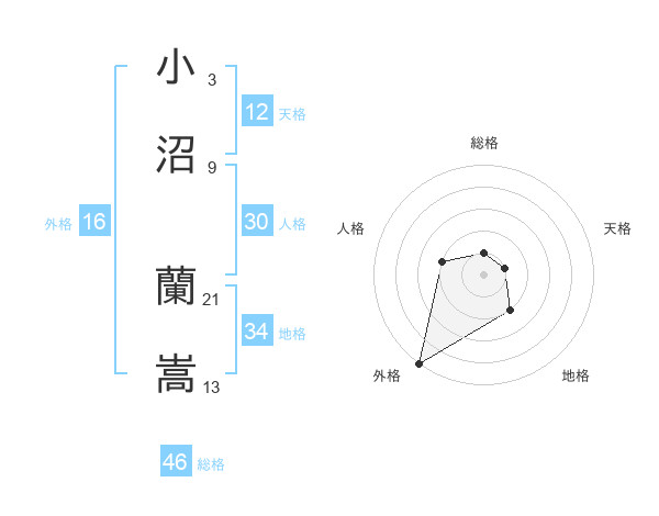 小沼 蘭嵩さんの総格は46画の1点!