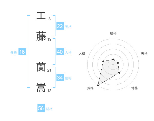 工藤 蘭嵩さんを姓名の画数から五運を鑑定