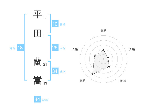 平田 蘭嵩さんを姓名の画数から五運を鑑定