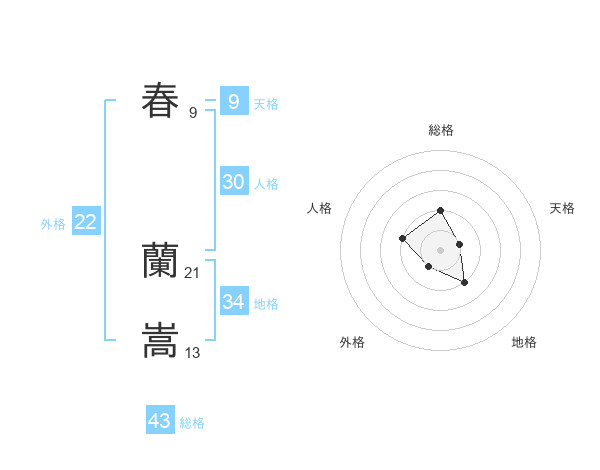 春 蘭嵩さんの総格は43画の2点!