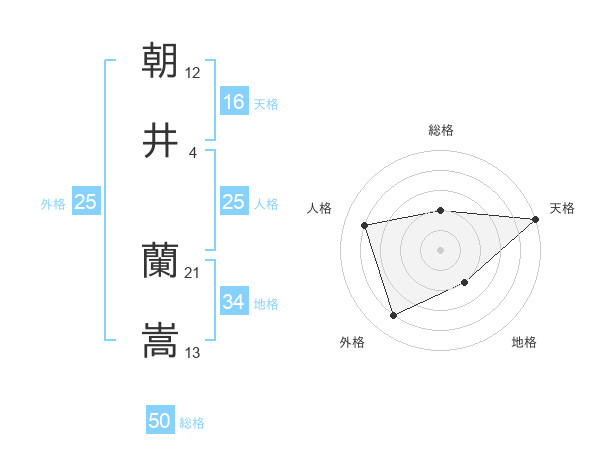 朝井 蘭嵩さんを姓名の画数から五運を鑑定