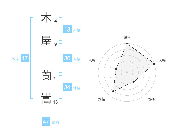 木屋 蘭嵩さんを姓名の画数から五運を鑑定
