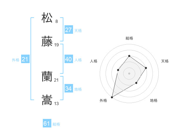 松藤 蘭嵩さんを姓名の画数から五運を鑑定