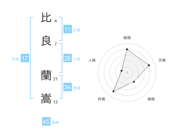 比良 蘭嵩さんの総格は45画の4点!