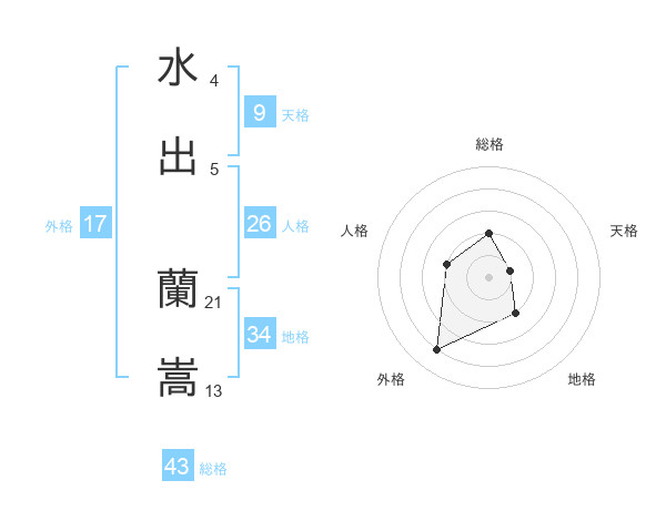水出 蘭嵩さんの総格は43画の2点!