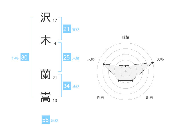 沢木 蘭嵩さんを姓名の画数から五運を鑑定