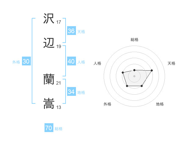 沢辺 蘭嵩さんの総格は70画の1点!