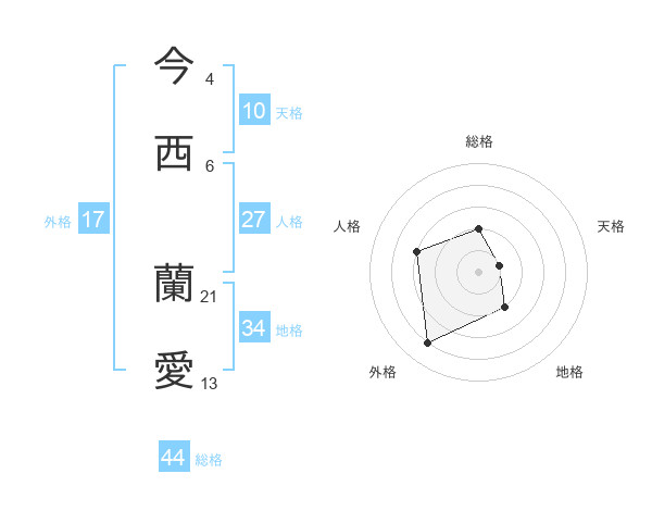 今西 蘭愛さんの総格は44画の2点