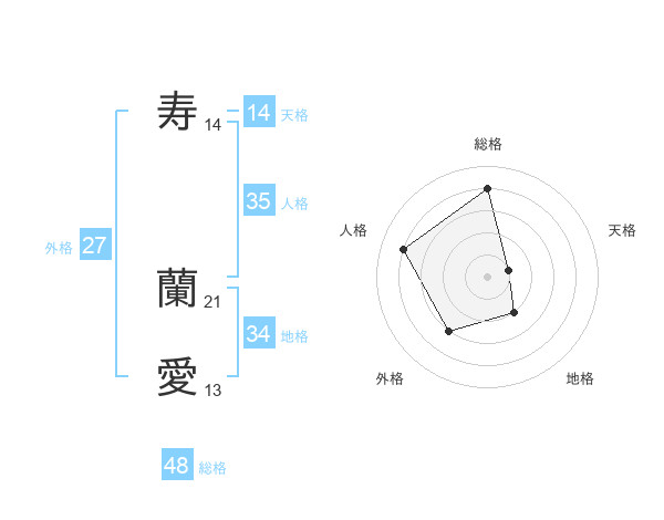 寿 蘭愛さんの総格は48画の4点!