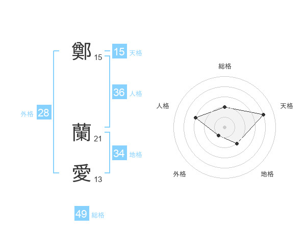 鄭 蘭愛さんの総格は49画の2点!