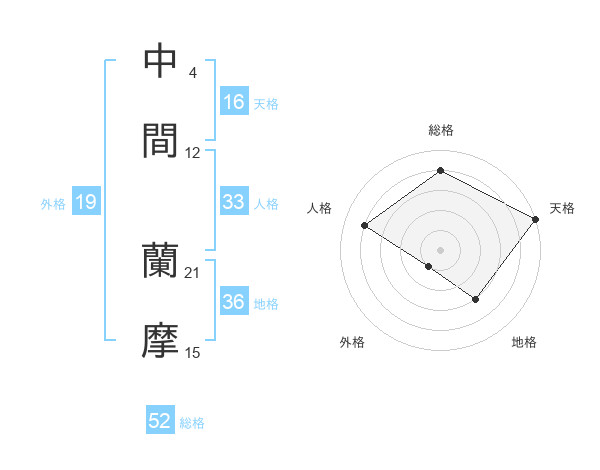 中間 蘭摩さんを姓名の画数から五運を鑑定
