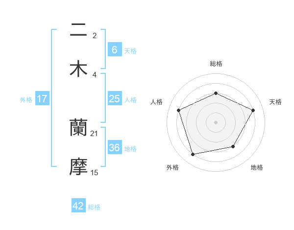 二木 蘭摩さんを姓名の画数から五運を鑑定