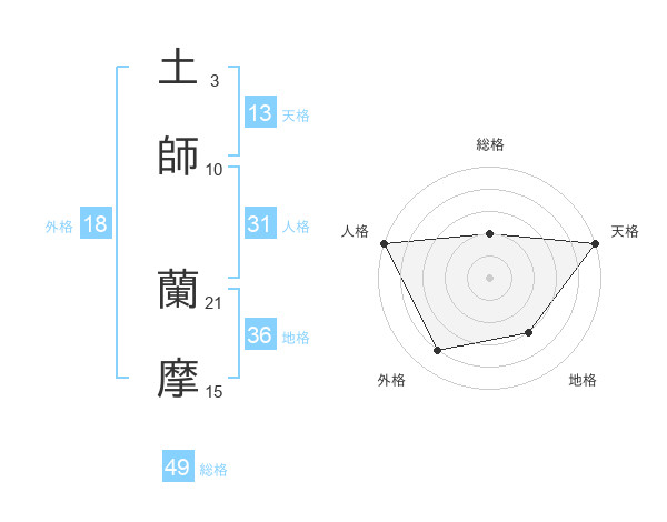 土師 蘭摩さんの総格は49画の2点!