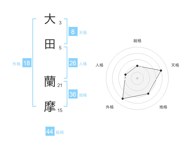 大田 蘭摩さんの総格は44画の2点!