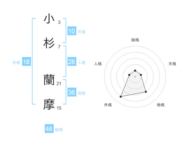 小杉 蘭摩さんの総格は46画の1点!